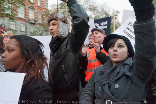 The police were still letting people walk up and down Whitehall and along to the NUS official protest on the Embankment