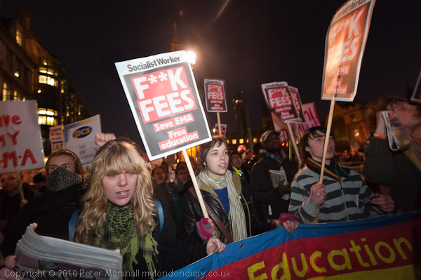 Piccadilly Circus to Parliament Square, London. Wed 19 Jan 2011