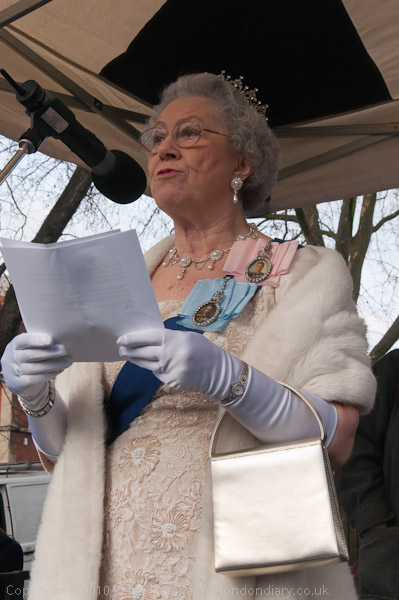 A 'royal visitor' Queen lookalike gives a humourous royal address