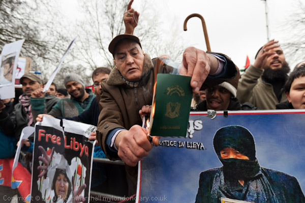 Gaddafi Must Go Now!Libyan Embassy, Knightsbridge, London. Sun 20 Feb 2011 |