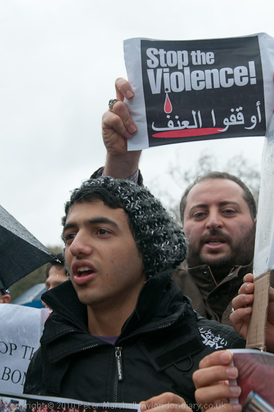 which is a few metres above the pavement level, so the were looking over the Hizb ut-Tahriri demonstrators towards the embassy