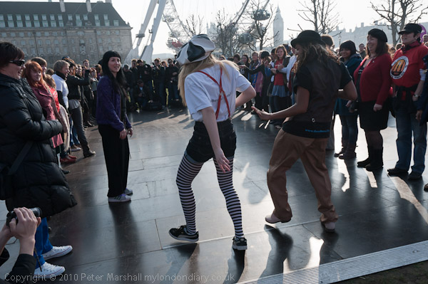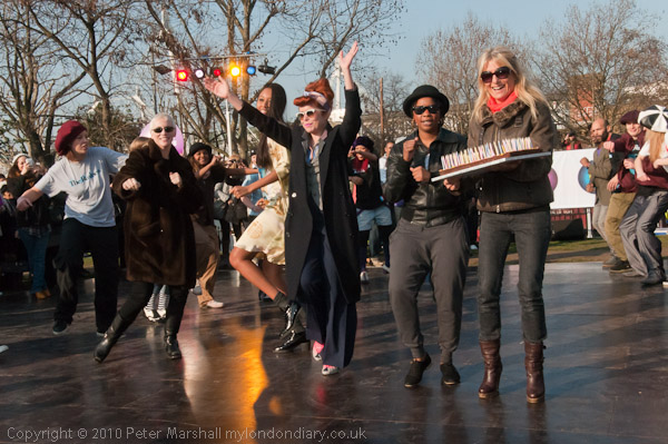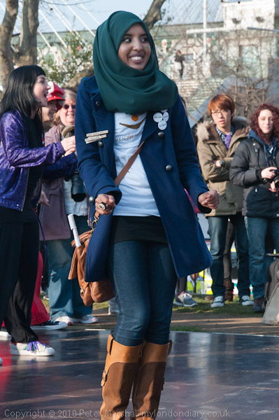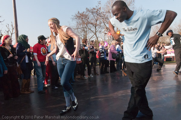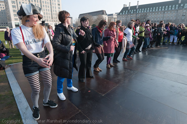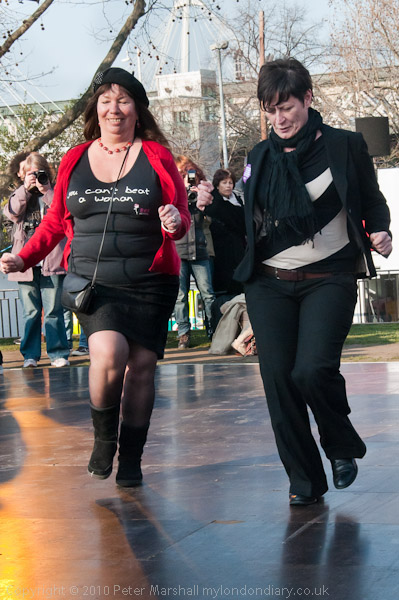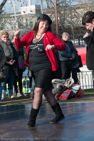 ![]() A team of professional dancers were there to give people some ideas of how to do the Soul Train dance ![]() ![]() ![]() ![]() 'You can't beat a woman' ![]() ![]() One woman was wearing a t-shirt from last Saturday's IWD event, the Million Women Rise march |