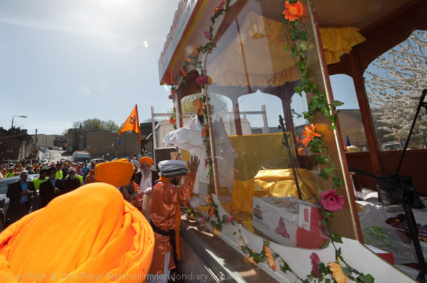 The Guru Granth Sahib is brought to the float