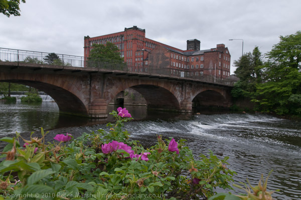 The older North Mill in front of the 1912 East Mill has a textile museum. A large area of the Derwent Valley is
