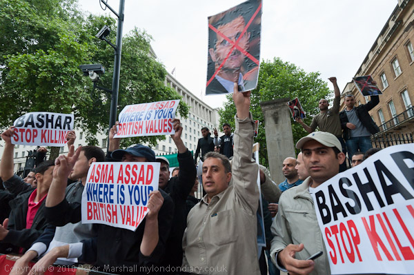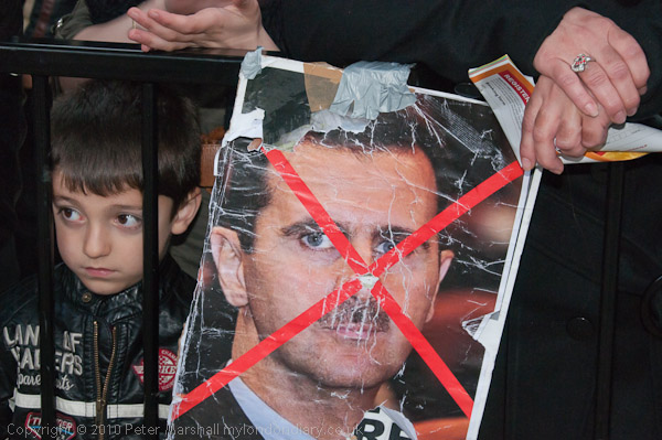The cartoon shows Syrian president Bashar al-Assad  with the devil''s horns and tail and a pitchfork