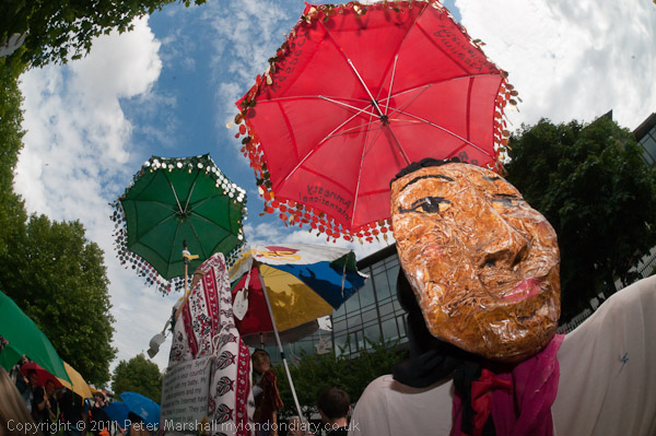 It should have been joined by the Amnesty workshop group that had been making these deocrated umbrellas