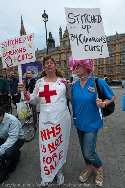 'Stitched up by Cameron's Cuts' - the two 'nurses'