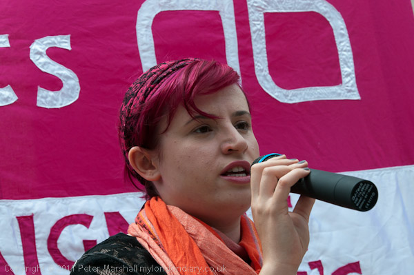 The only man to speak while I was there, he saw and commented on the placard 'Politicians make crappy doctors!'