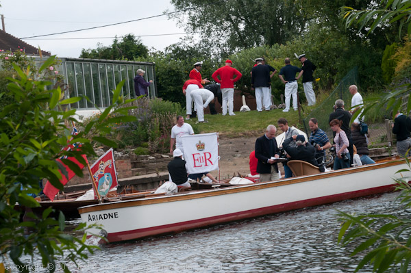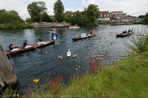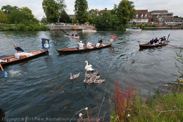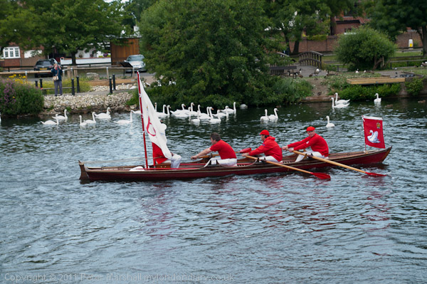 The Queen's Swan Warden and his colleagues in the 'Royal Swan' usually go ahead of the uppers and spot the swans
