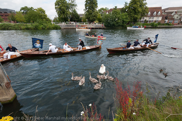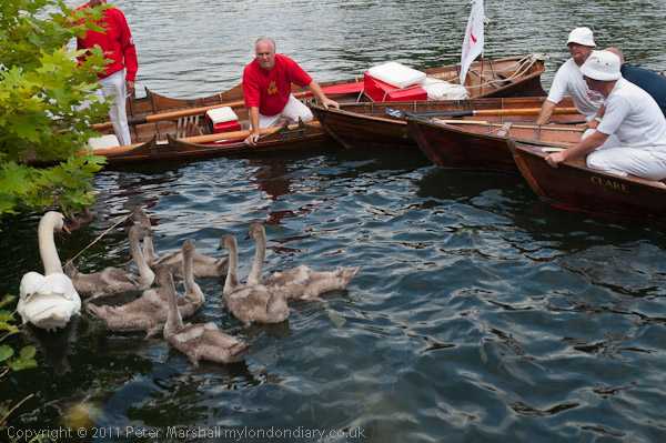 closing the gaps between them, then bringing in the boats to close in on the swans