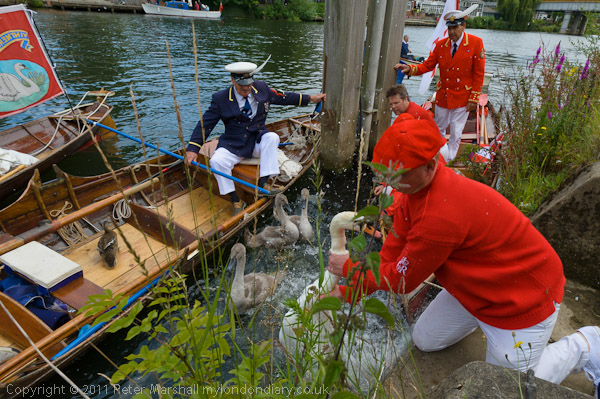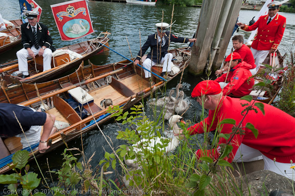 but soon he has her firmly. Swans stop struggling once their feet are held behind them