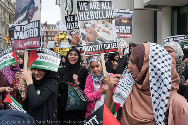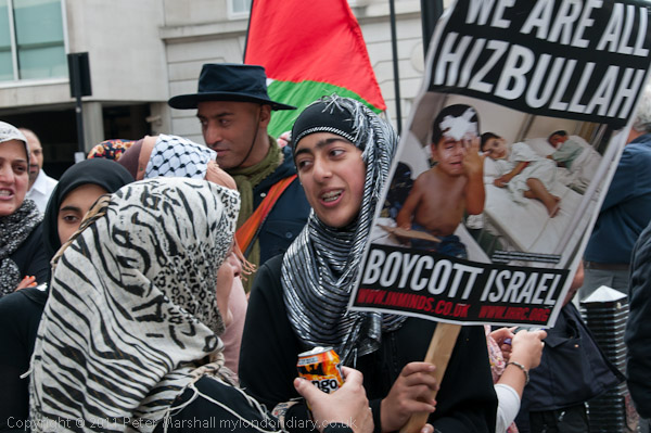The Al Qud's Day march forms up with placards 'We are all Hizbullah - Boycott Israel'