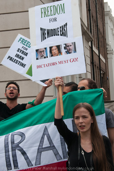 'Dictators Must Go' and they demane 'Freedom for Syria, Iran and Palestine'