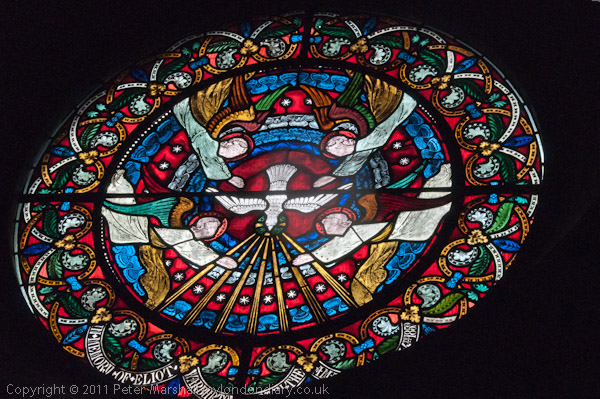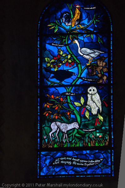 The window 'Nativity' designed by John Piper and given to the chuch by his widow in 1995