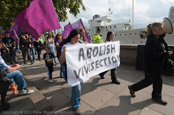 The group marched up Embankment and I left them as they were on their way to deliver a letter to Downing Street and hold a protest opposite there calling for the abolition of vivisection.