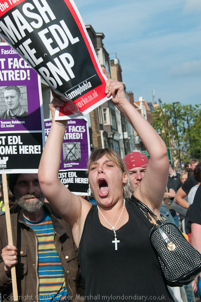 Crowds gather at Aldgate to stop the EDL, but police keep them well away