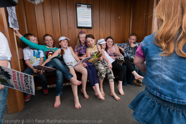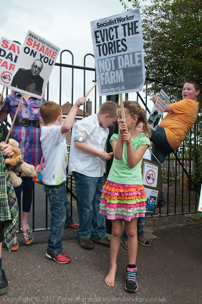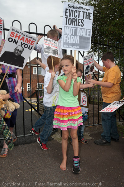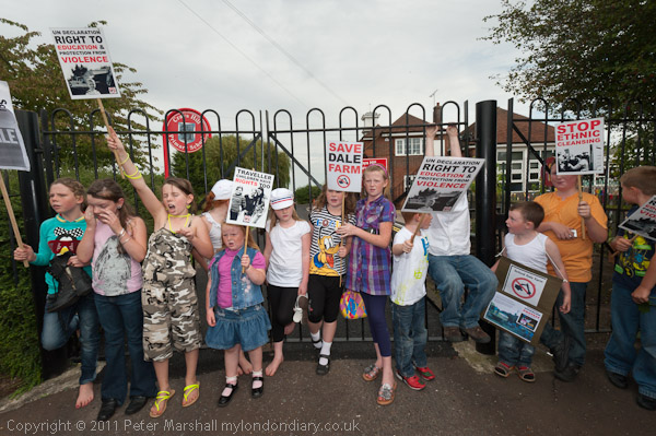 Dale Farm children outside the gates of Cray's Hill Primary School, some still without their shoes