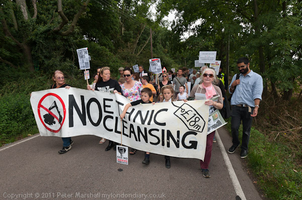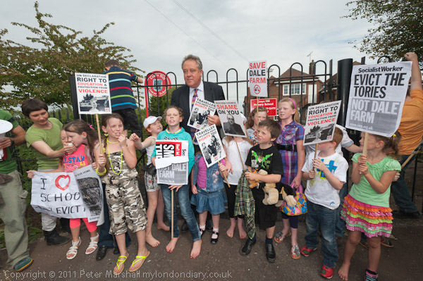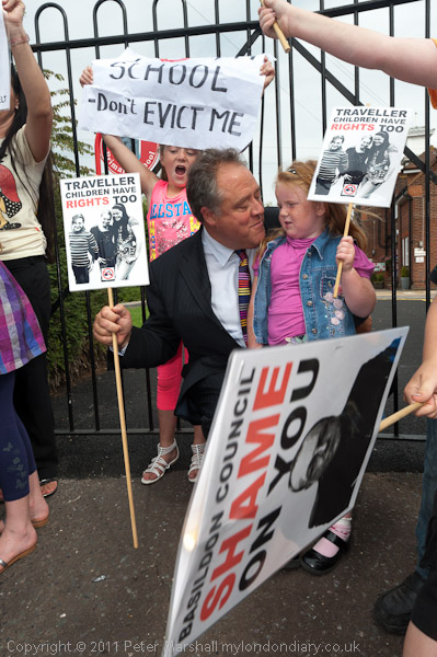 Euro MP Richard Howitt talking to Dale Farm residents on the march