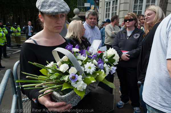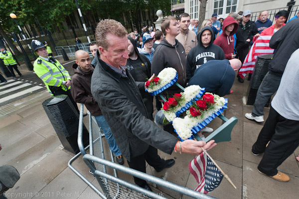 The EDL were first to attive, and came to the northwest corner of the square, some carrying wreaths & flowers