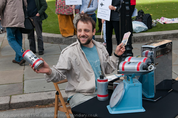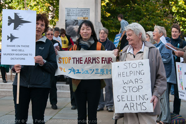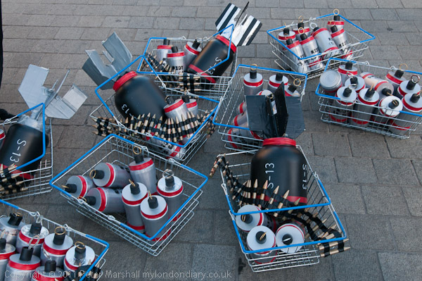 Sparkles not Shrapnel protest with placard 'Reap The Rainbow' and East London protesters