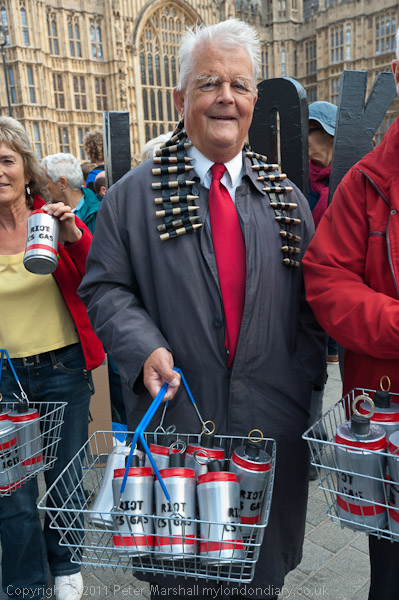 Bruce Kent gets in a good supply of bullets and CS gas for riot control