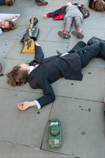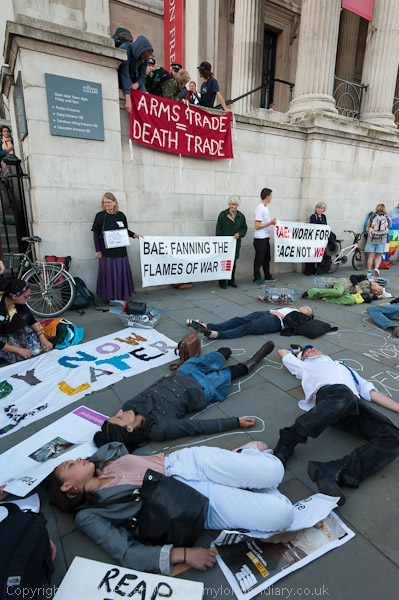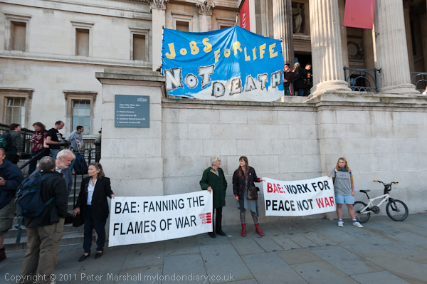 Ignoring the protests of the National Gallery security staff, some of the protesters rushed up the steps with their banners