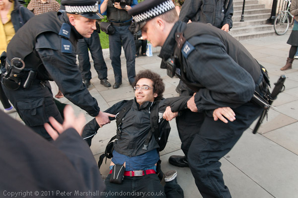 Police argued with the protesters to get them down from the steps and those on the terrace staged a die-in