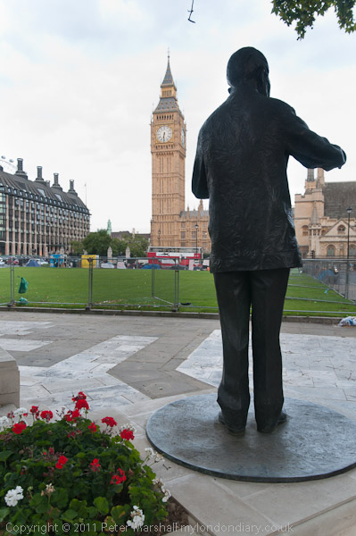 ![]() The protesters start to pack up after around an hour and we go home ![]() ![]() I walk past Westminster Cathedral ![]() and offices to Parliament Square, where I take a couple of pictures and talk to Barbara Tucker, recently out of prison ![]() ![]() There is no one in at the Peace Strike as I pass |