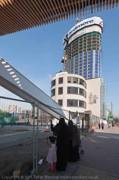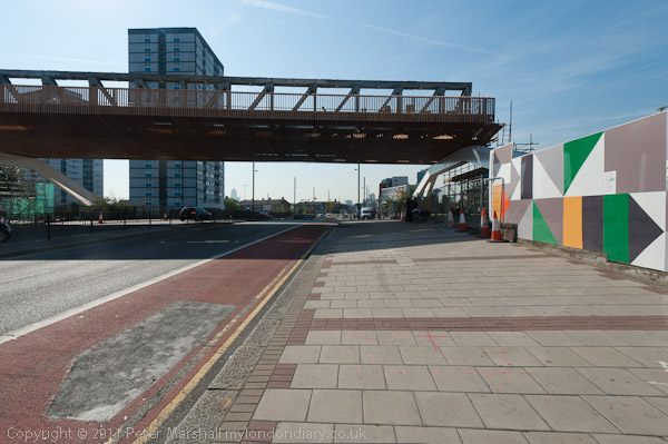 The start of the new suspended walkway under the Bow Flyover at the grandly named Global Approach