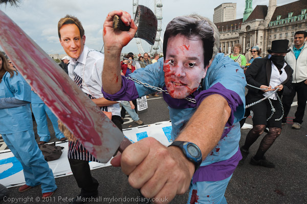 While massive and dangerous cuts were being made by a butcher held back on chains