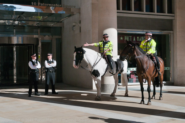 Meanwhile, the Occupy London (OccupyLSX) protesters were gathering on the steps of St Paul's Cathedral