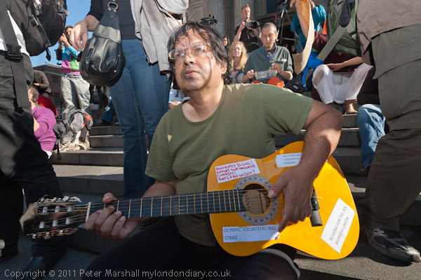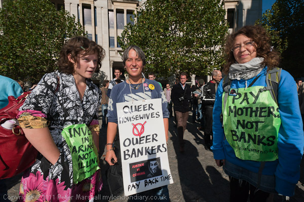 More pictures of Peter Tatchell with placards for a Tobin tax on financial transactinos and a 20% tax on the mega-rich