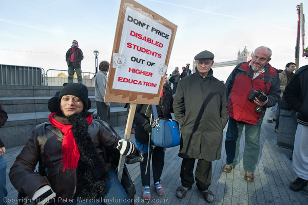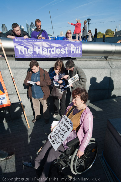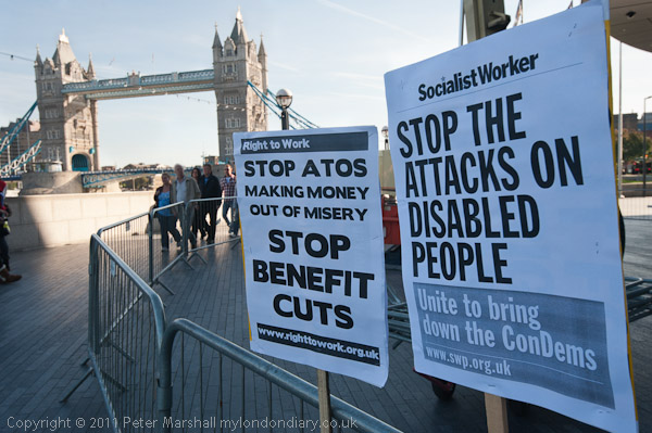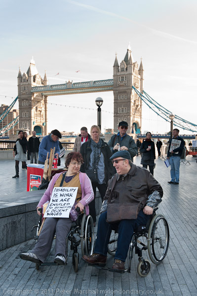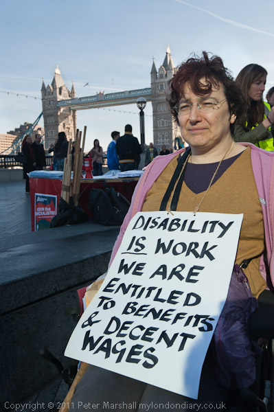Clare's placard said 'Disability IS work - We are entitled to Benefits & Decent Wages'
