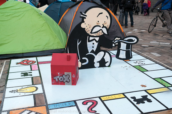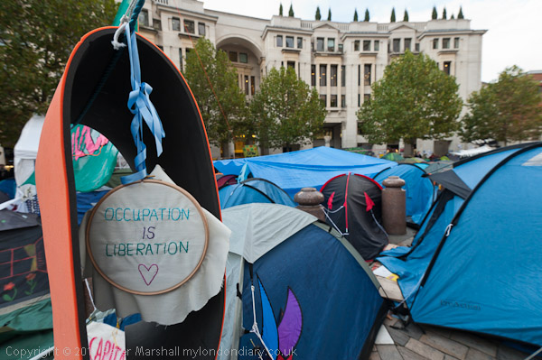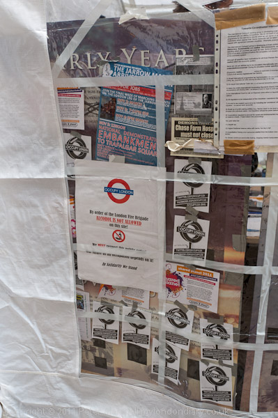 Occupy London were later forced to stop using the Underground logo by legal threats, although there seemed little danger of them being confused with London's transport provider. The ban on alcohol is observed by many residents, but OccupyLSX attracts and supports some of the drinkers who live