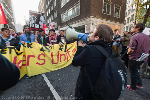 Only a few hundred people had arrive at Moorgate, the rest held up by police on High Holborn, so I decided