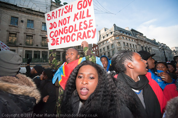 Posters called on the UK and Obama to stop supporting Kabila "He is a Killer"