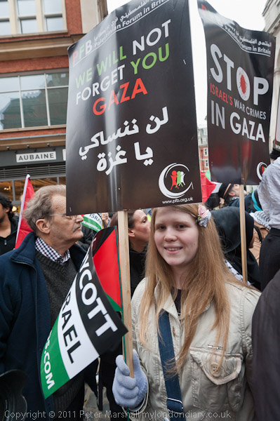 Placards read 'We Will Not Forget You Gaza' and 'Stop Israel's War Crimes in Gaza'