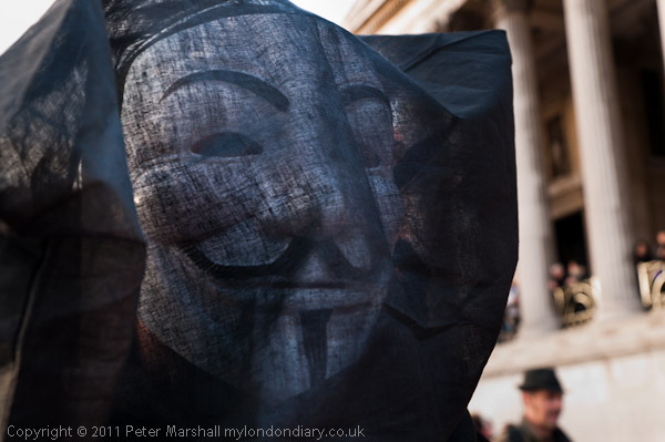 Anonymous mask (V for Vendetta) and 'Metropolitan Peace' uniform