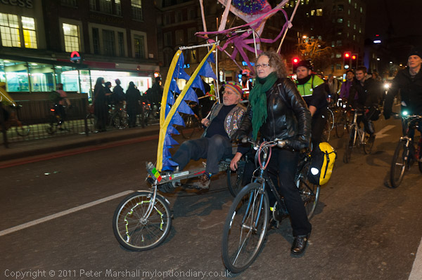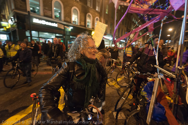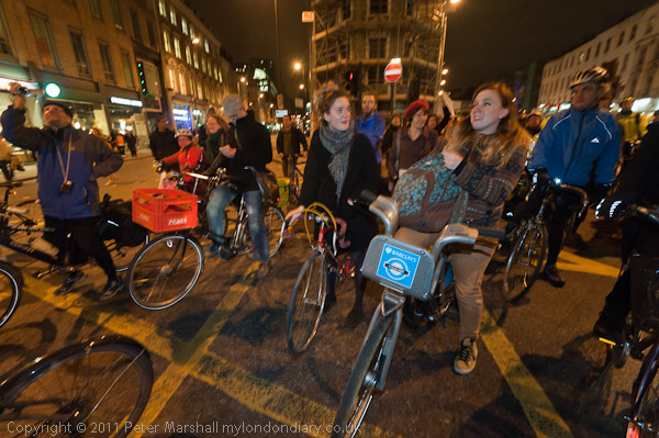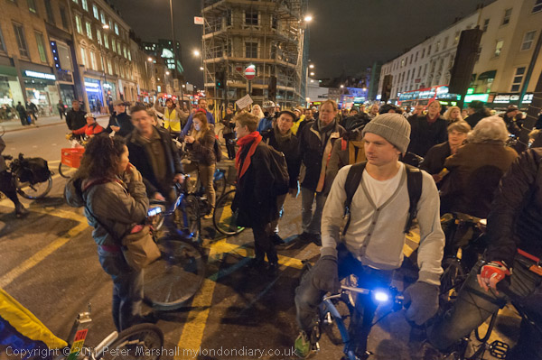 I counted around 150 bikes in the protest and there were around 50 people on foot as well
