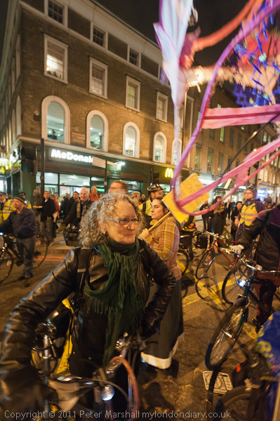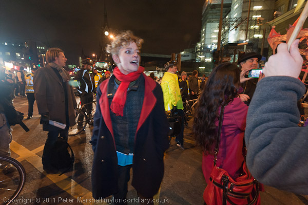 and stops on the box junction, where Tamsin Omond is leading some chanting