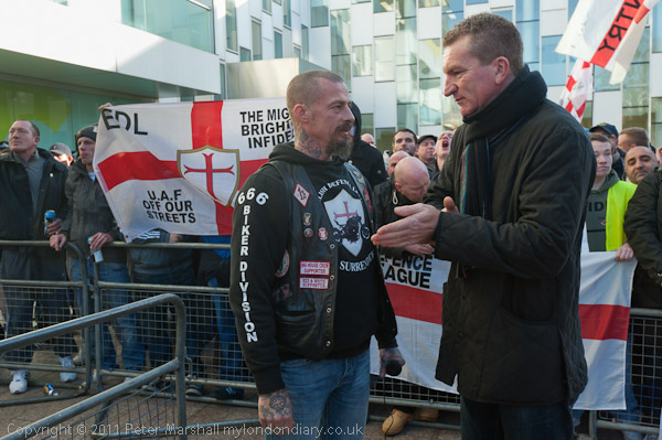 Other EDL stewards kept between the pen and the lines of police across the square