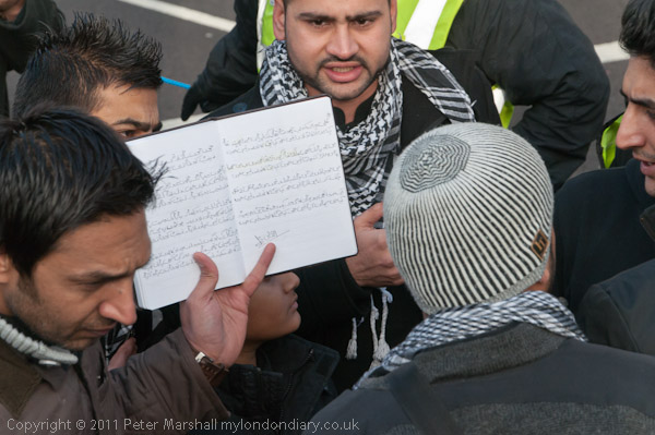 recitation from a hand-written book