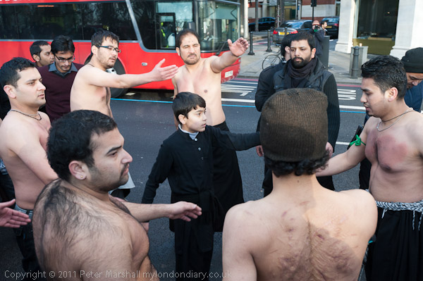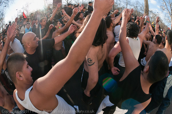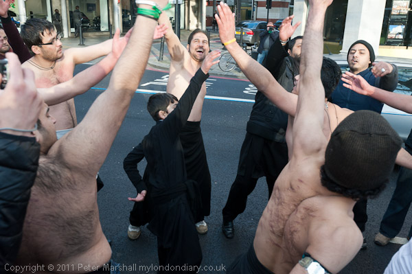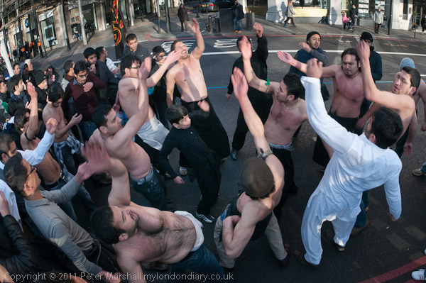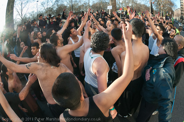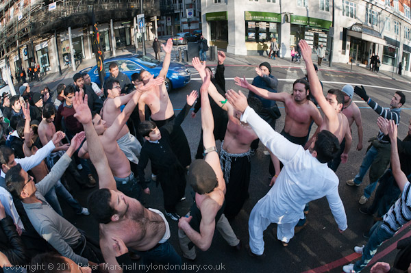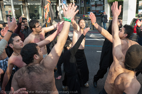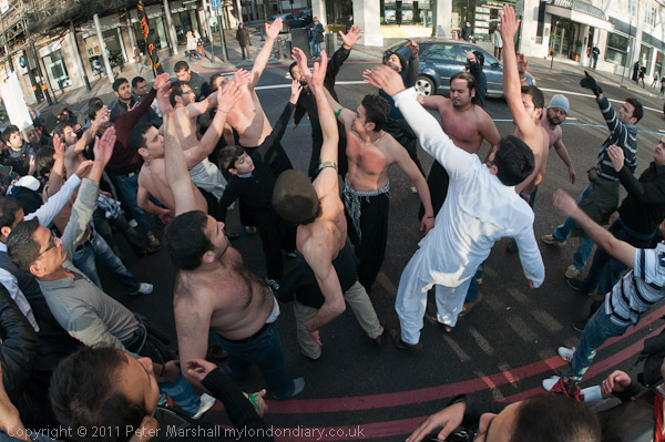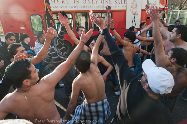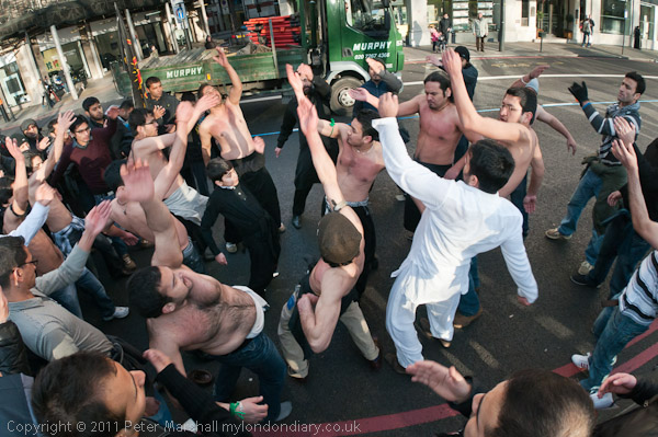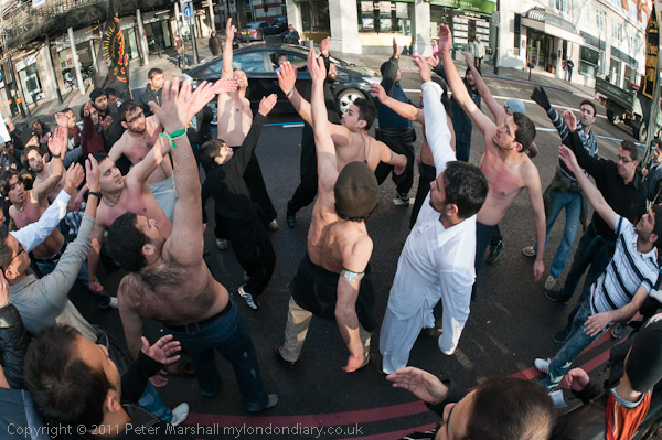 Some groups of men get down to some very energetic beating of breasts on Park Lane
