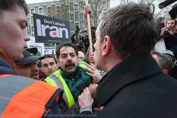 Free Iran supporters began to shout loudly during one of the speeches, calling for support against dictatorship