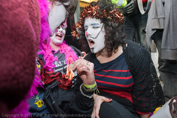The clowns sprang into action