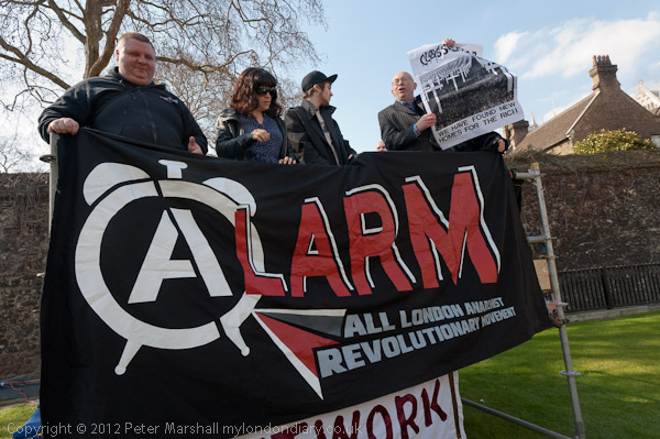 And put up the Alarm (All London Anacrchist Revolutionary Movement) banner