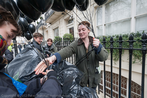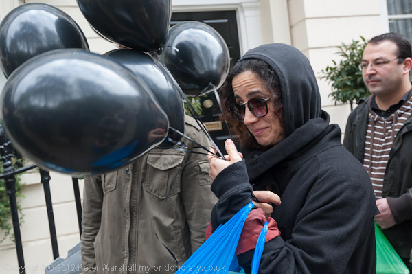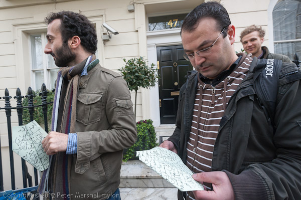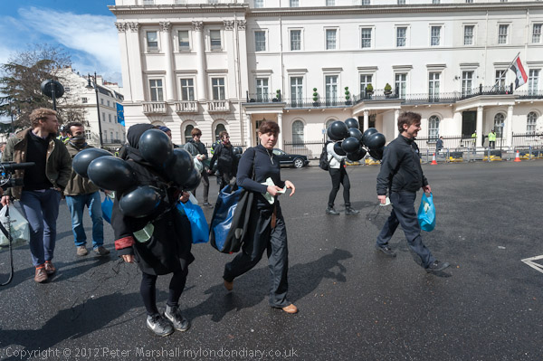 Police tell the protesters they may only protest on the opposite side of the road from the embassy