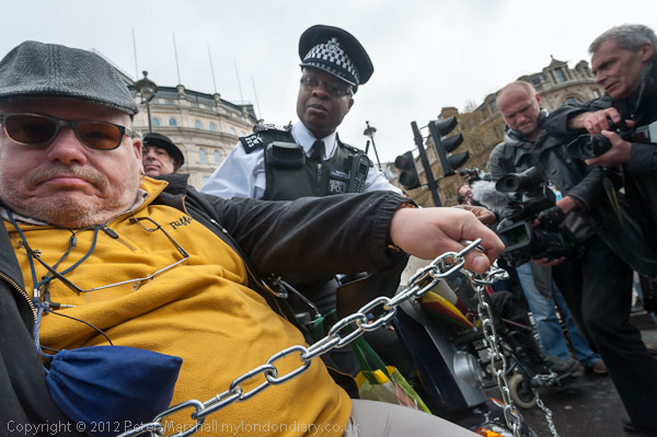 But the protesters moved onto the road and chained their wheelchairs in a line across it