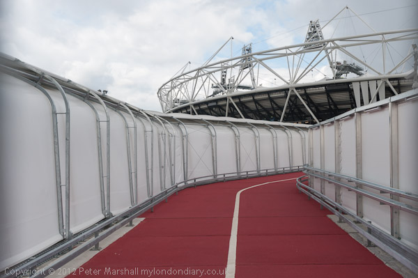 Red carpet for athletes from warm up track to stadium - and there is another under cover