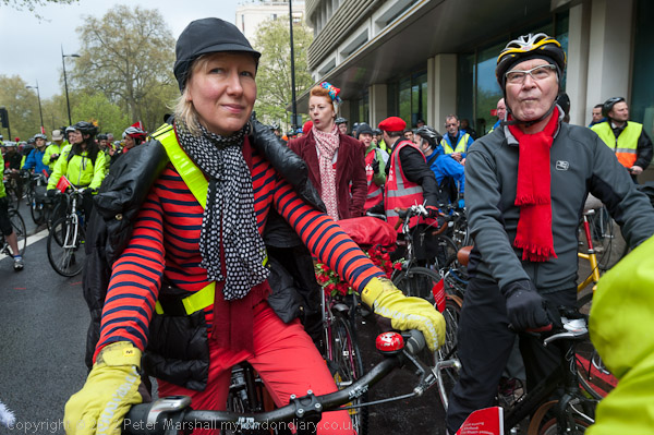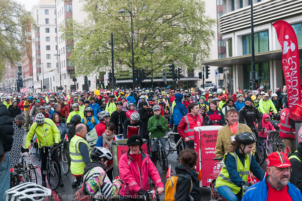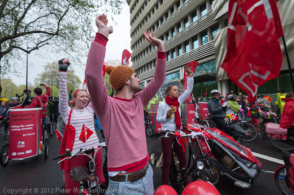 The cyclists sent a Mexican wave along Park Lane